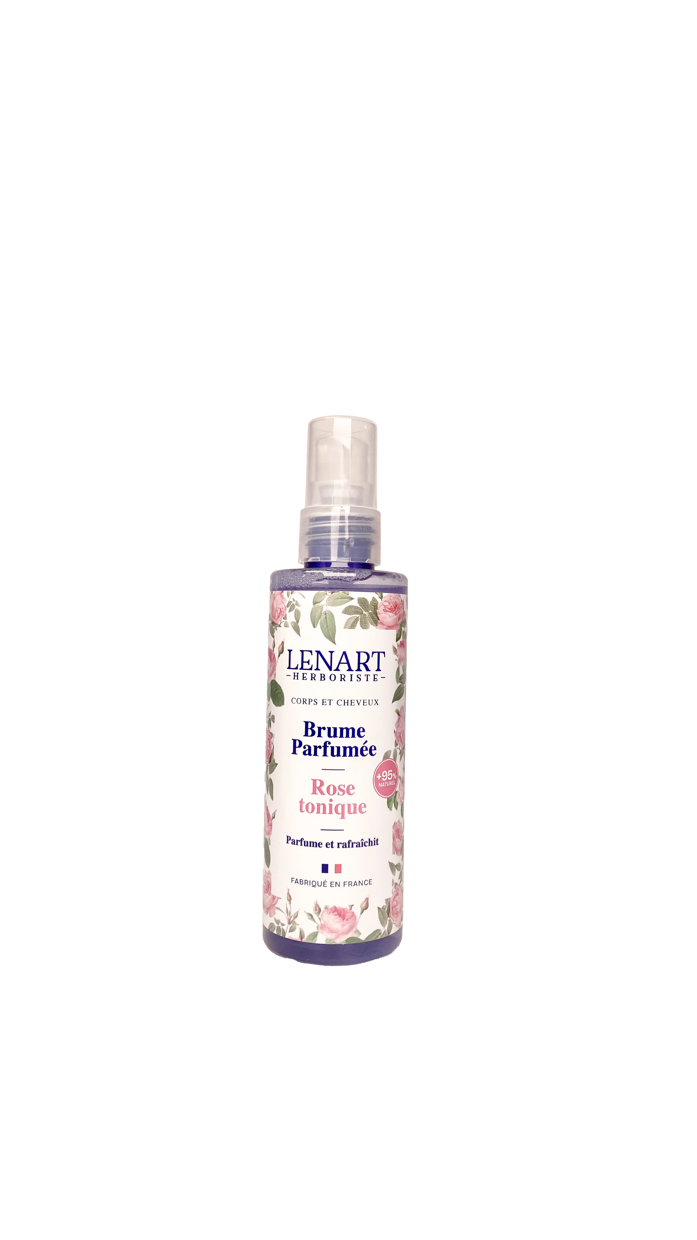 La brume parfumée Rose tonique parfume la peau et les cheveux avec légèreté. Son parfum libère les notes pétillantes et fleuries de la rose.